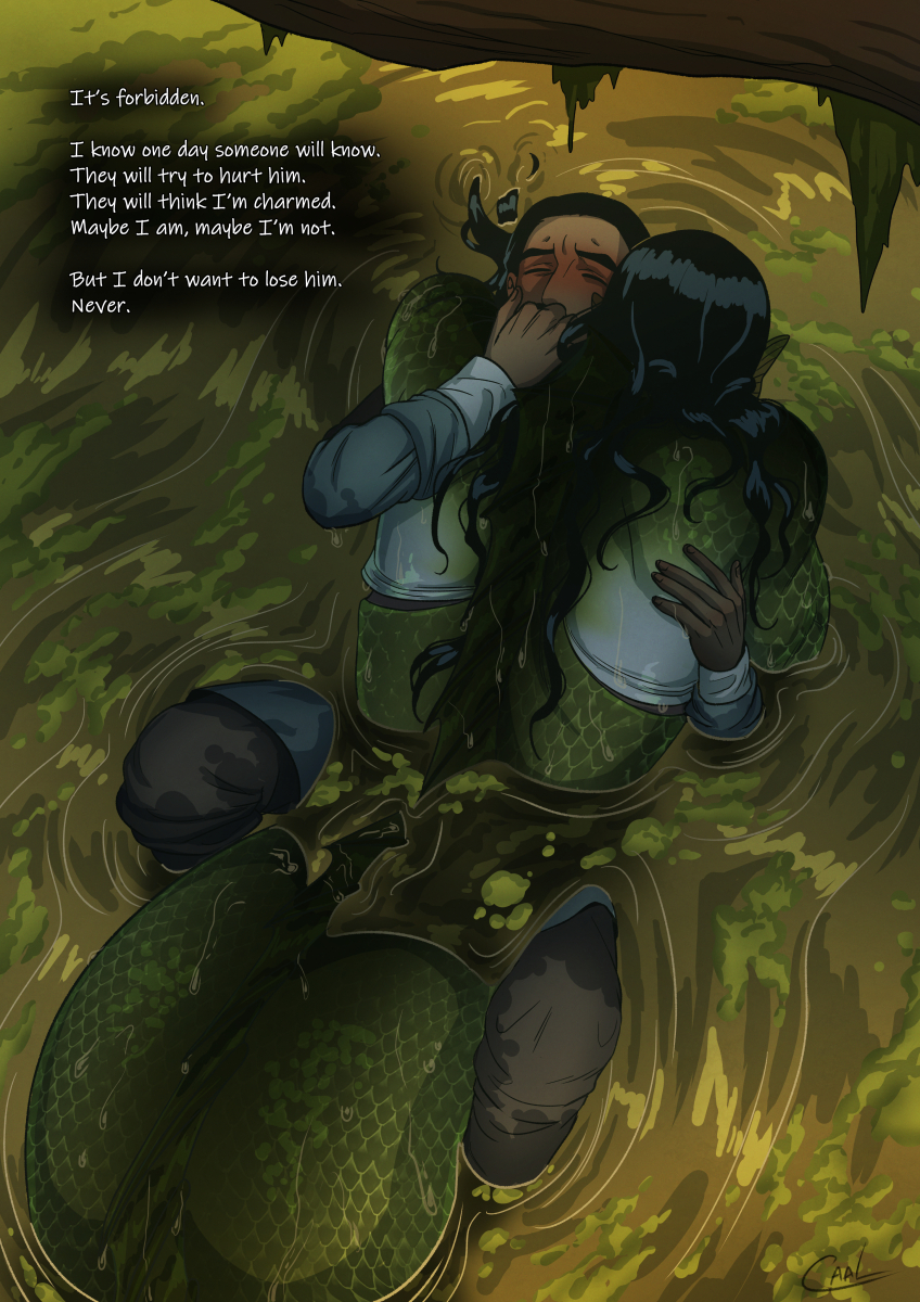 A young human meets a trapped merman in the swamp and decides to help him, instead of killing him or running away. This event marks the beginning of their forbidden relationship.